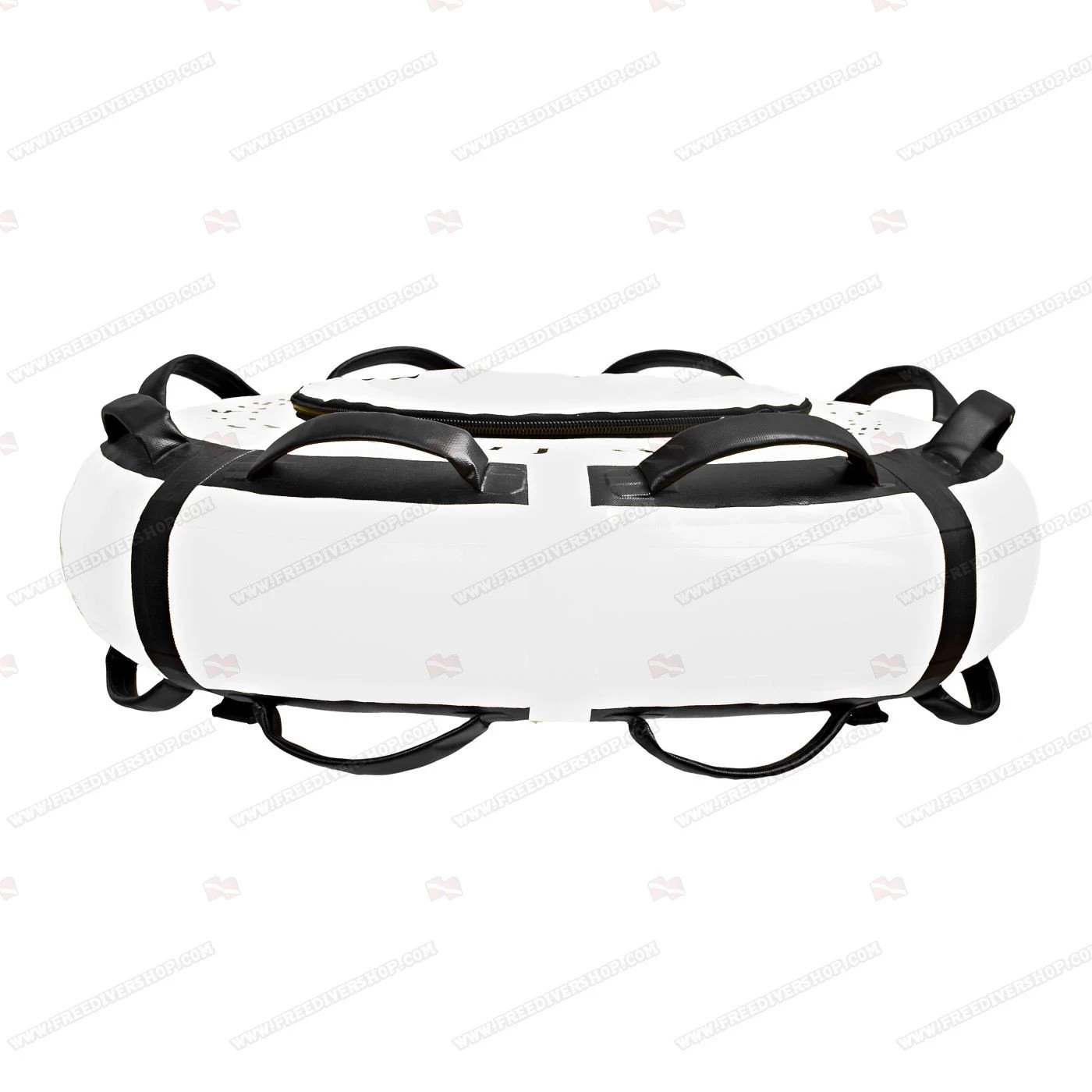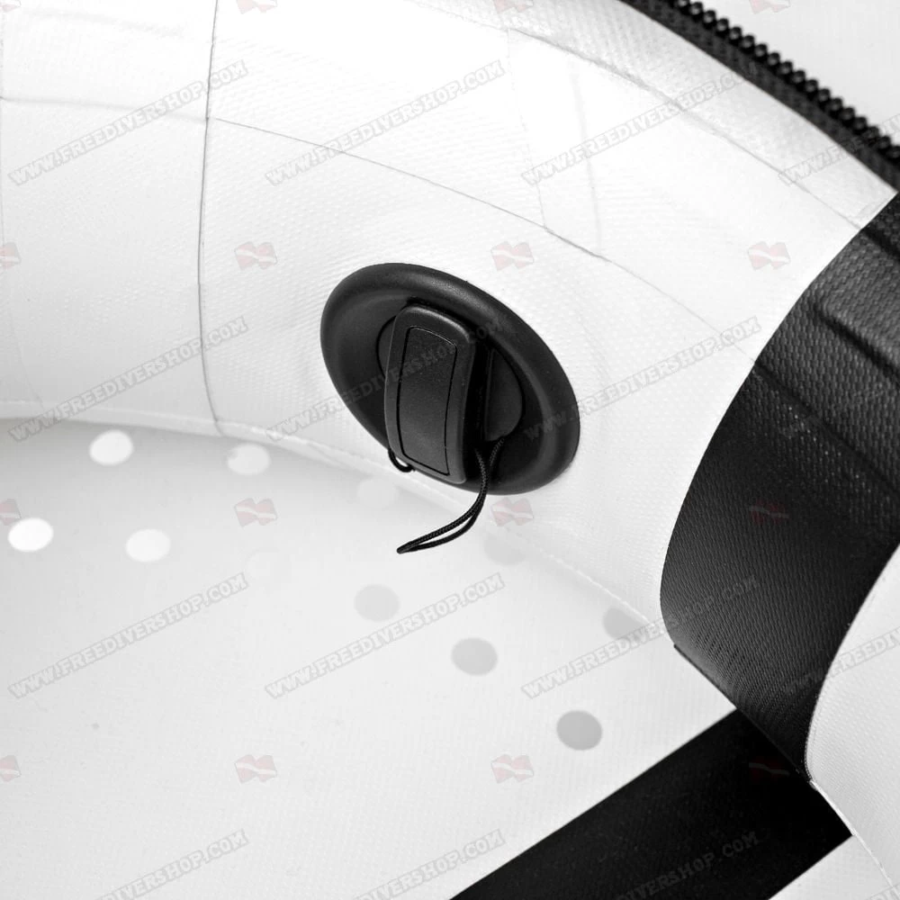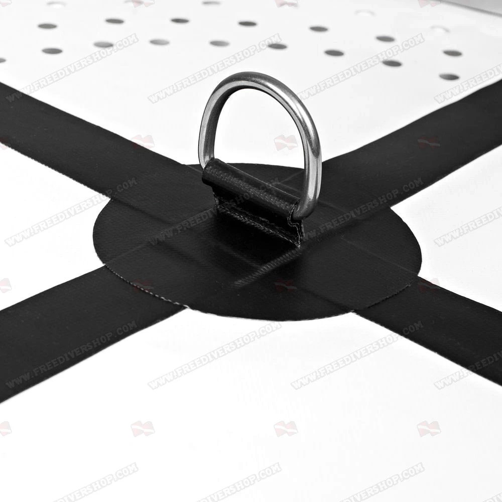 Fitted with a stainless steel D ring and 16 soft ergonomic grip handles, both on the top and bottom part of the buoy, allowing gripping the buoy comfortably in virtually any diving conditions and breathup style.