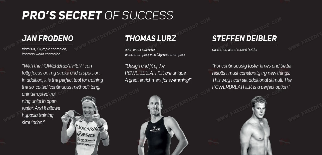 The Ameo Powerbreather is in use by the world’s top athletes including EU IronMan cahmpion Jan Frondo, OW swimming world champion Thomas Lurz, swimming world record holder Steffen Deibler and others.