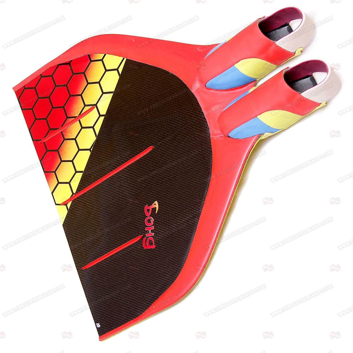 The Bondarev monofin sports a pair of one-of-a-kind hand made rubber cast foot pockets which are made to match with your specifications for absolute fit and comfort.