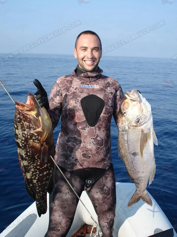 Brown camouflage open-cell wetsuit for freediving and spearfishing from Divein.