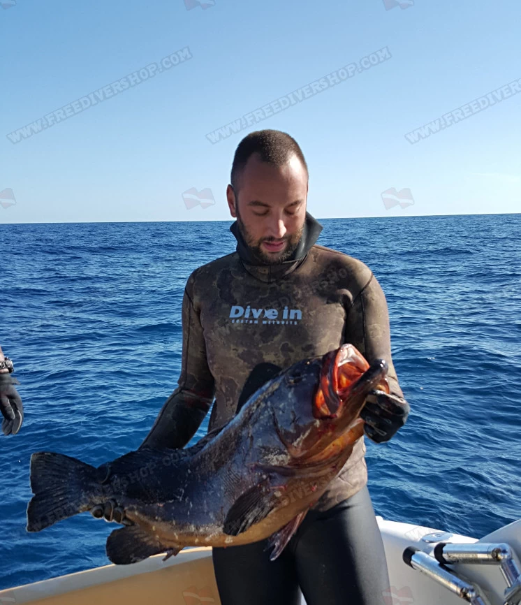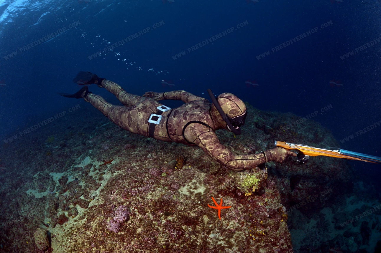 Olive green / brown camouflage open-cell wetsuit for freediving and spearfishing from Divein.