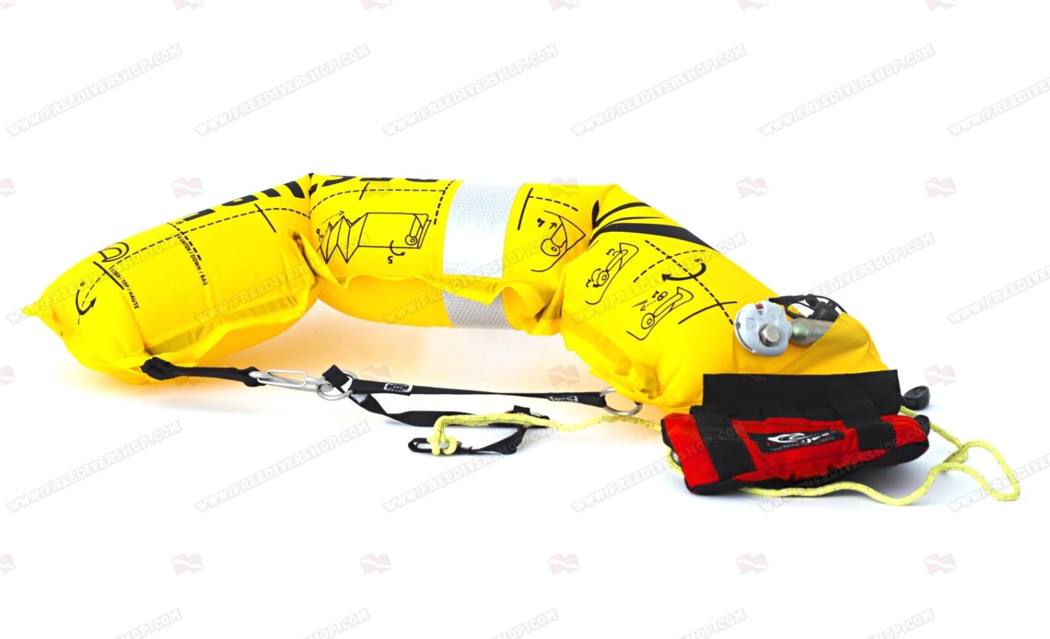 Revolutionary self inflating Restube Lifeguard rescue buoy.