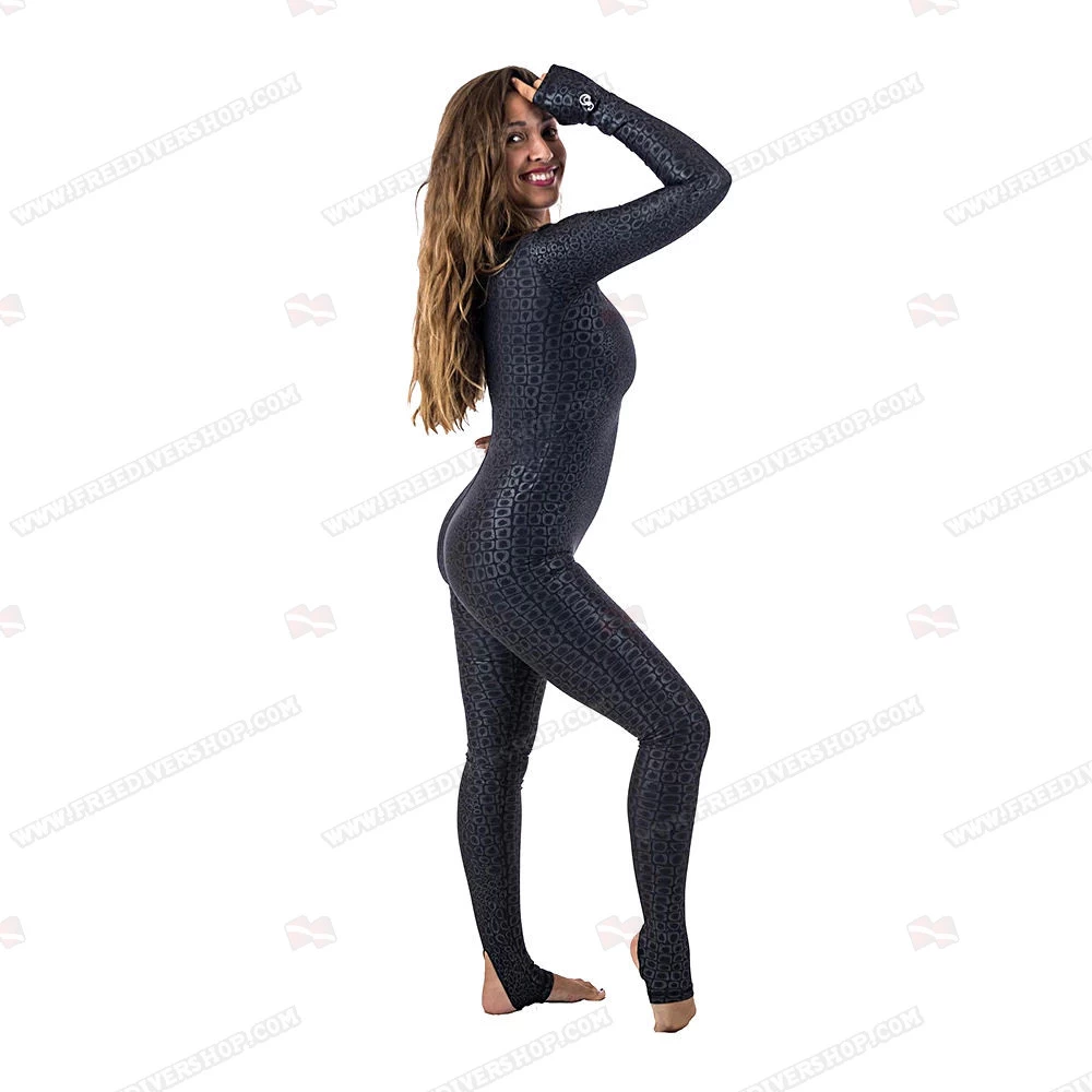 The Slipins dive and surf skin offers 50+ UPF sun protection and blocks 98% of UVA and UVB rays.