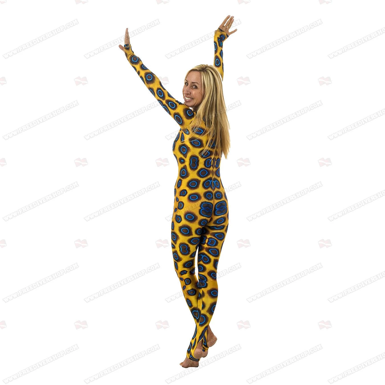 The Slipins dive and surf skin offers 50+ UPF sun protection and blocks 98% of UVA and UVB rays.